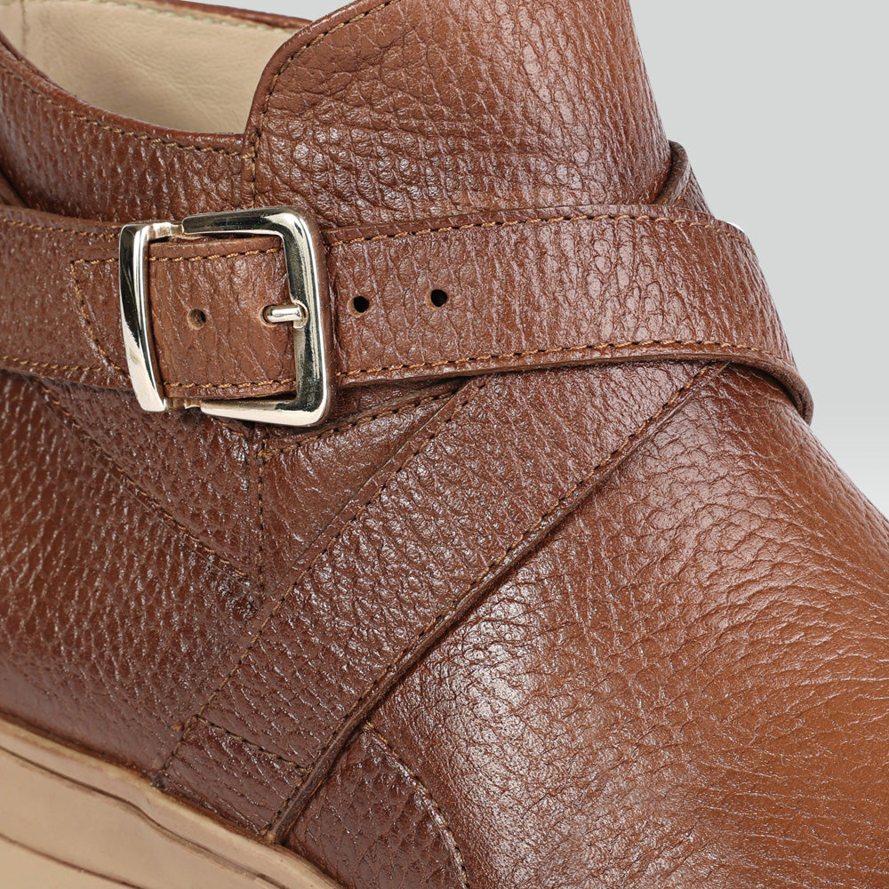 Estos botines están elaborados a mano con piel de borrego color café budapest, su principal atractivo consiste en que es la piel es aislante y suave que aporta una gran comodidad. El forro es de piel natural y la suela de látex con líneas de flexión y punto antishock aminora el impacto al caminar. La comodidad de estos zapatos se complementa con una plantilla acojinada que te hará sentir tus pasos más suaves. Son ideales para salir a dar una caminata larga en la montaña mientras te das una escapada de fin de semana o dar un paseo en el parque con tu mascota.