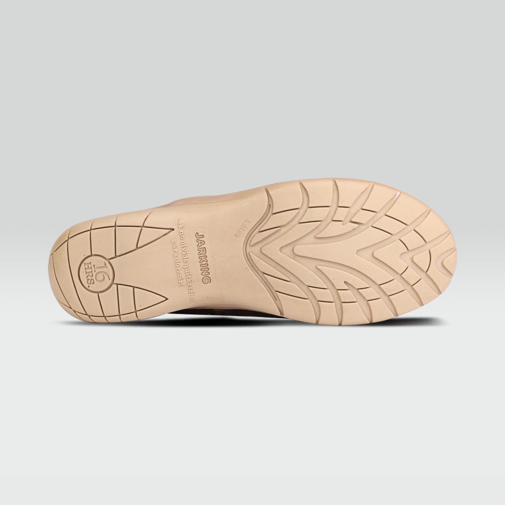 • Suela de látex ergonómica con líneas de flexión y punto antishock que reduce el impacto al caminar.