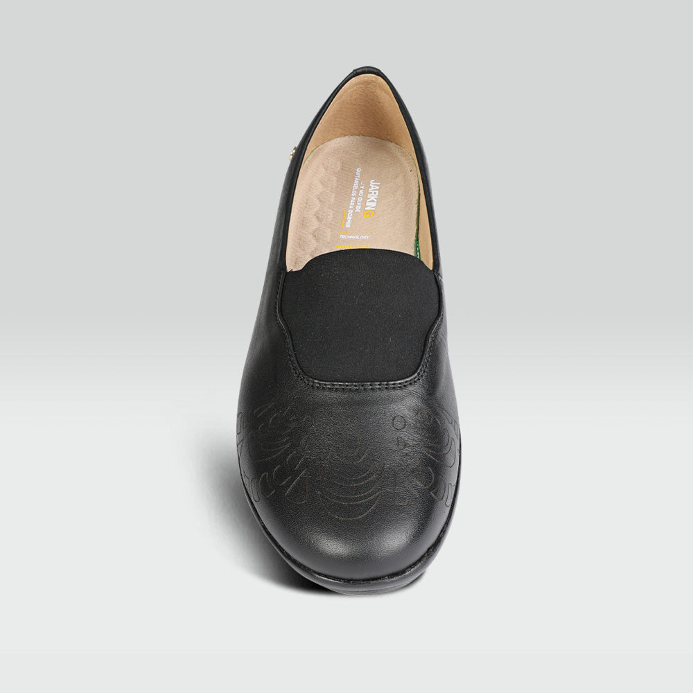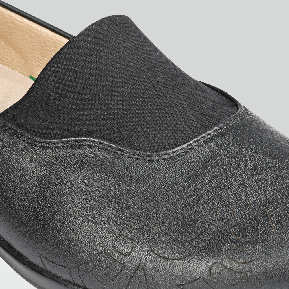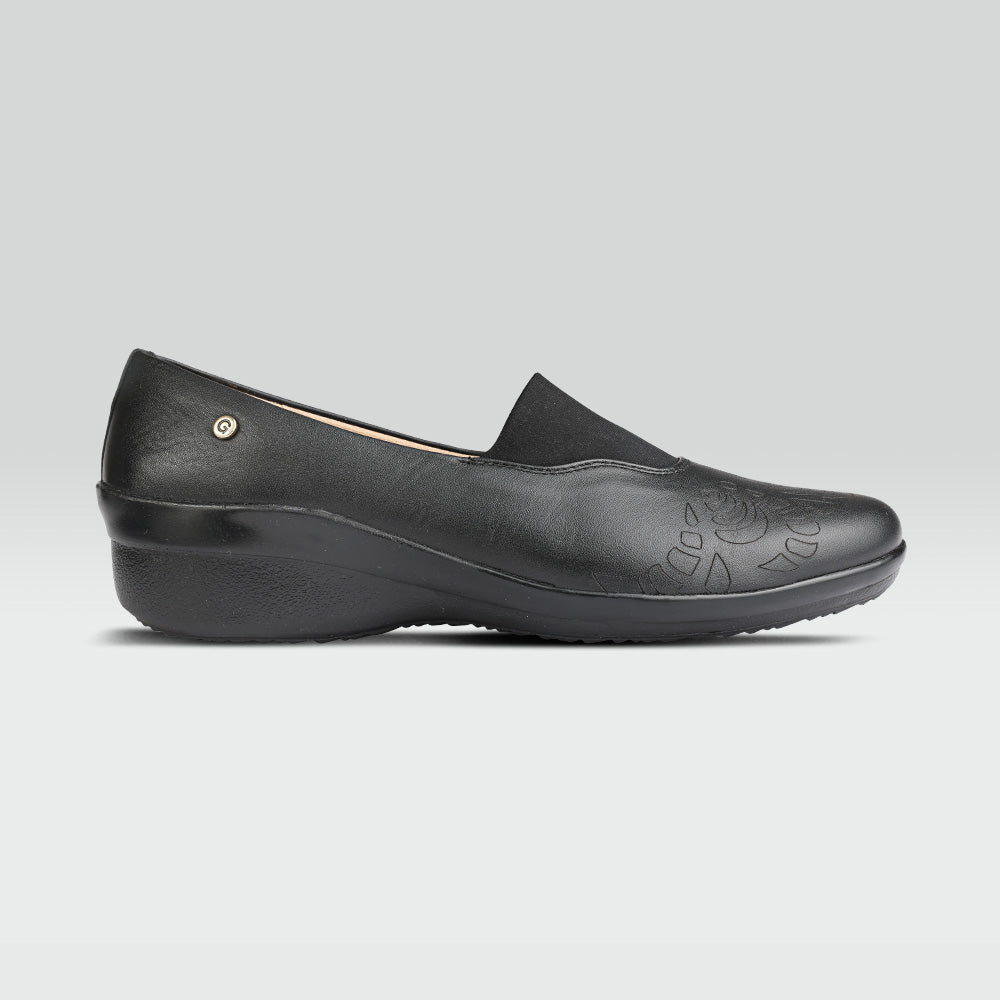 Calzado casual color negro para dama, con neopreno en empeine, dándole mayor amplitud, ajuste, diseño innovador y versátil. Ideal para usarlo en casa o en una salida casual; estos zapatos están fabricados a mano, por lo que son perfectos para pies sensibles, tienen amplitud especial interna (EE). La suela está elaborada de material PU y tiene propiedades antiderrapantes, proporciona mayor estabilidad, tiene soporte antishock y su diseño permite una excelente flexión y rendimiento al caminar.