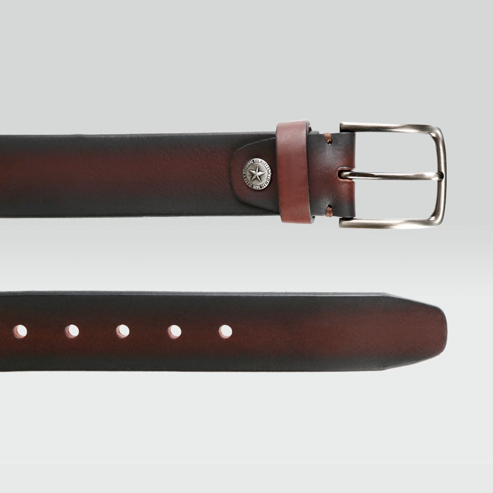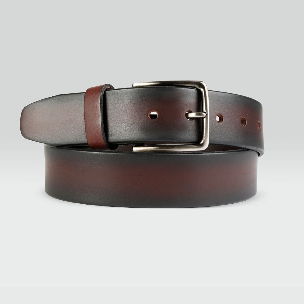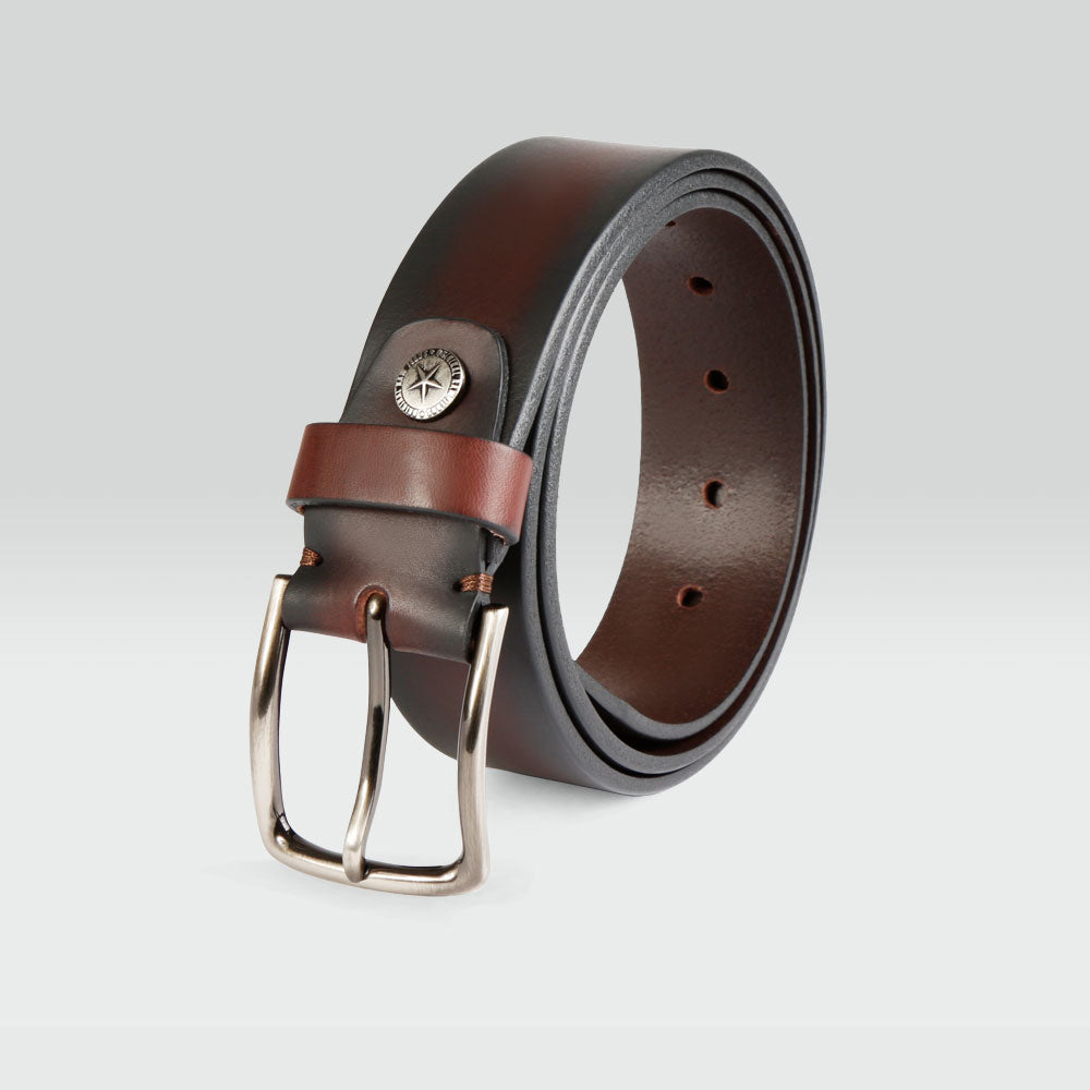 Cinturón de piel para hombre color café moka, de corte moderno, con hebilla en tono plata; este modelo de cinturón tiene un estilo más casual y relajado, con acabado mate en la piel. Es ideal para usarlo con jeans, completa tu look de fin de semana con este cinturón.