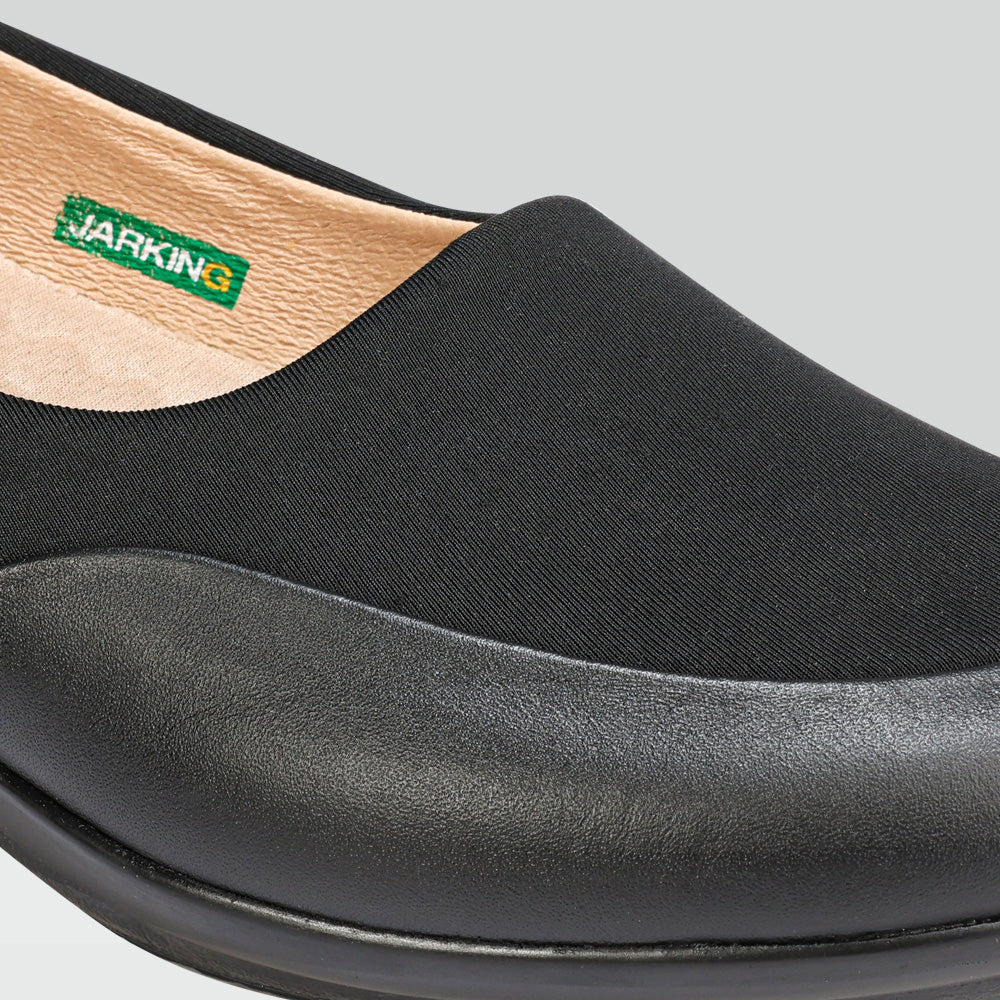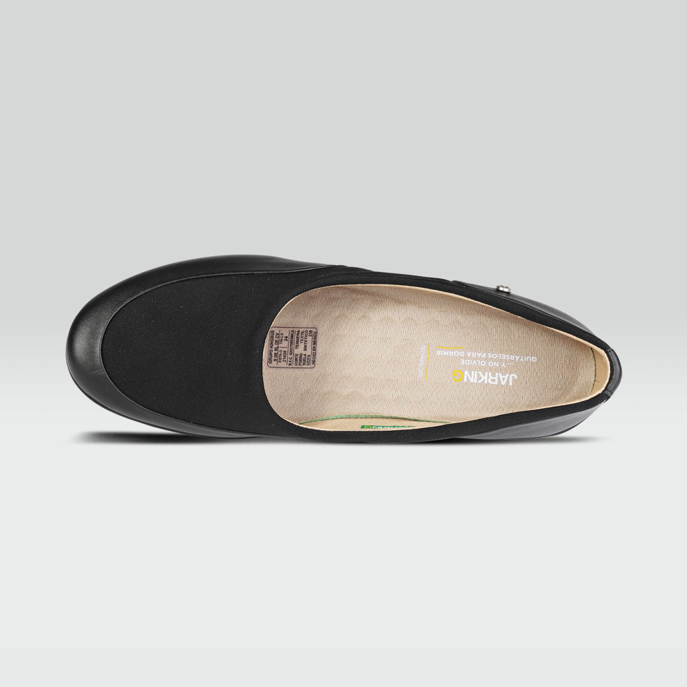 Calzado casual color negro para dama, con neopreno en empeine, dándole mayor amplitud, ajuste, diseño innovador y versátil. Ideal para usarlo en casa o en una salida casual; estos zapatos están fabricados a mano, por lo que son perfectos para pies sensibles, tienen amplitud especial interna (EE). La suela está elaborada de material PU y tiene propiedades antiderrapantes, proporciona mayor estabilidad, tiene soporte antishock y su diseño permite una excelente flexión y rendimiento al caminar.